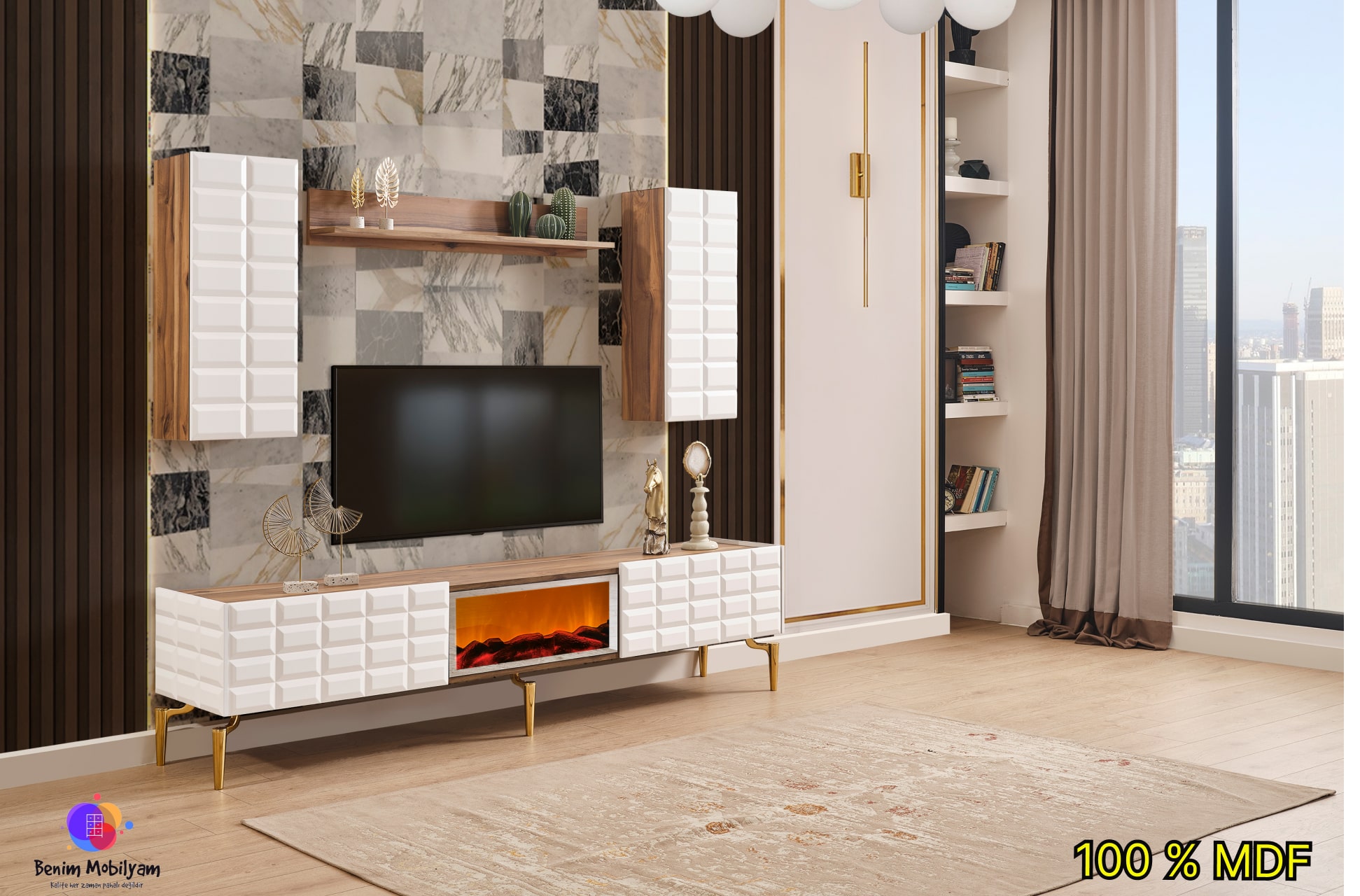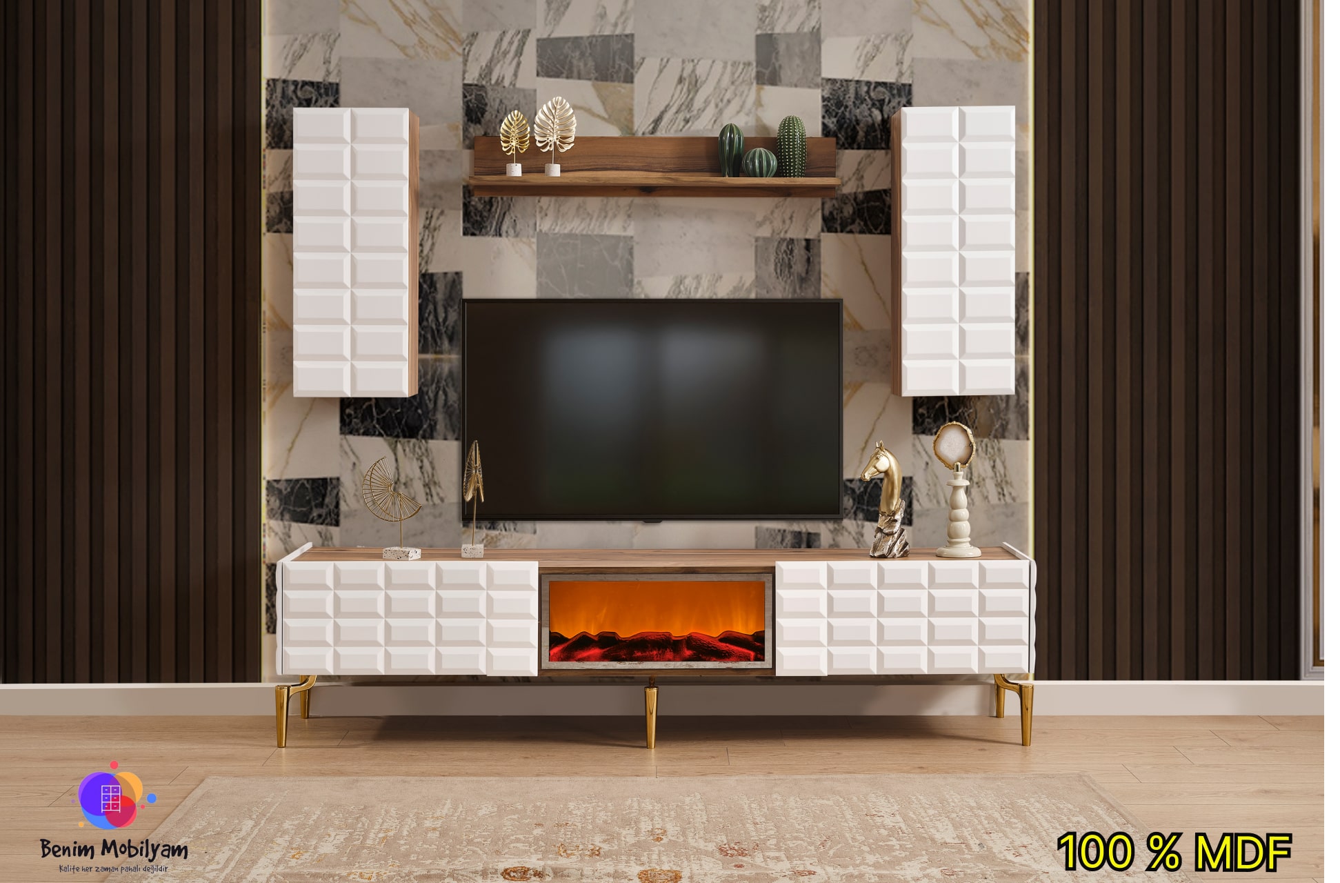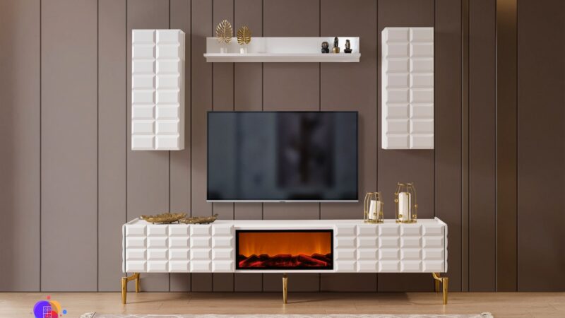 Ağva Ceviz Şömineli MDF Tv Ünitesi